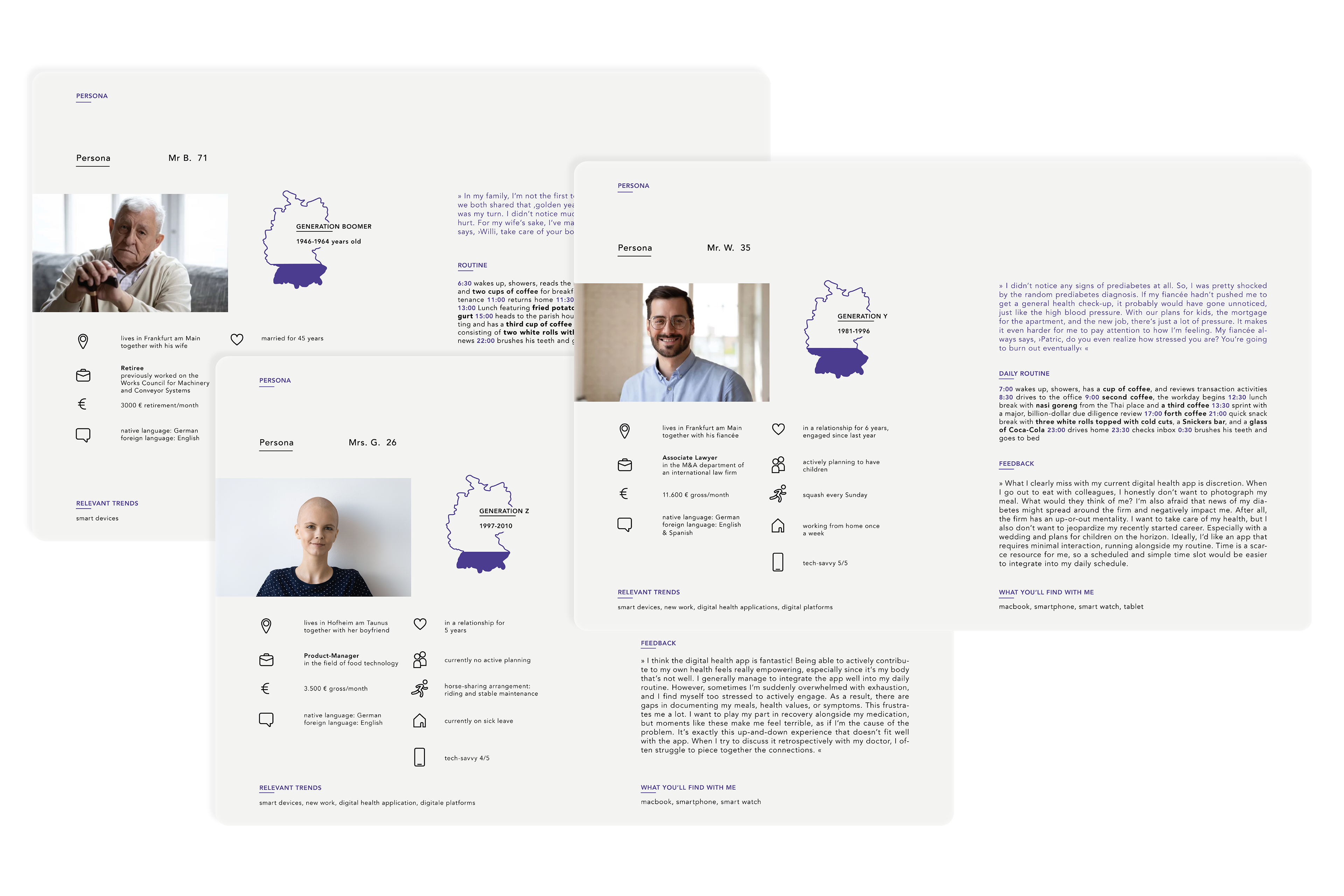 Each target group has distinct needs. Healthcare professionals value seamless integration and transparent access to patient data, while patients face the challenge of adapting to new, often unsettling health realities. Yet both share a common goal: simple, intuitive tools that fir effortlessly into daily life.
